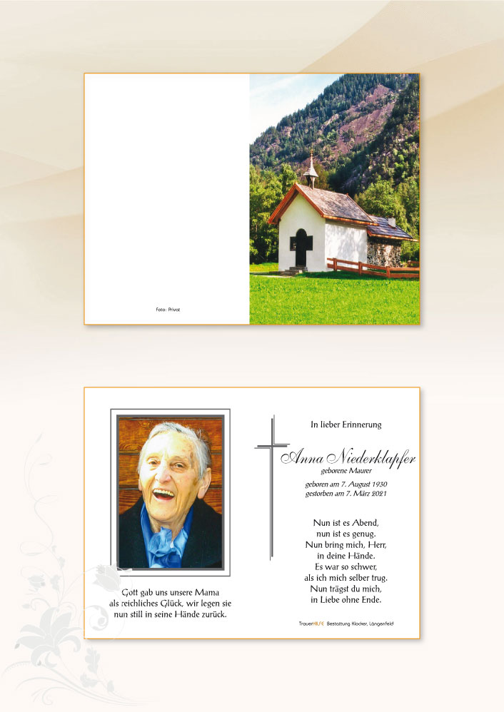 Liebe(r) Maria, Silvia, Bernhard und Trauerfamilien,