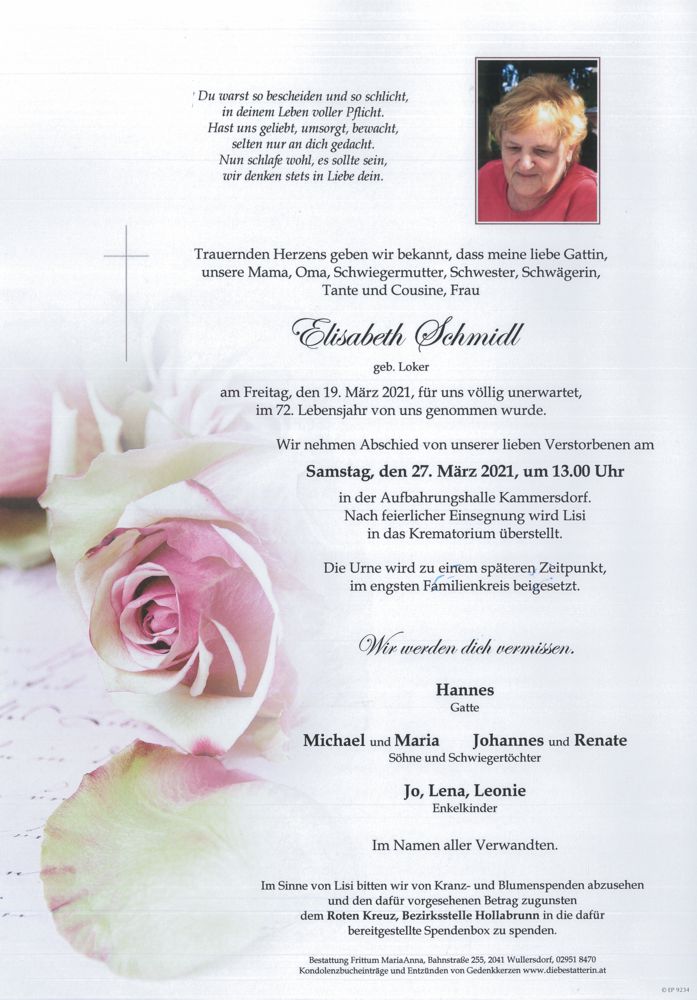 Neue Kerze für Elisabeth Schmidl entzünden.