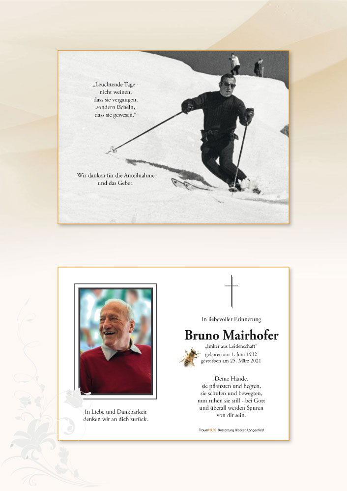 Wir möchte euch unsere aufrichtige Anteilnahme zum Heimgang von Bruno entgegenbringen. Möge euch die lange schöne Zeit die ihr mit ihm verbringen durftet über den Verlust hinweghelfen und euch Kraft für die nächste Zeit geben .
