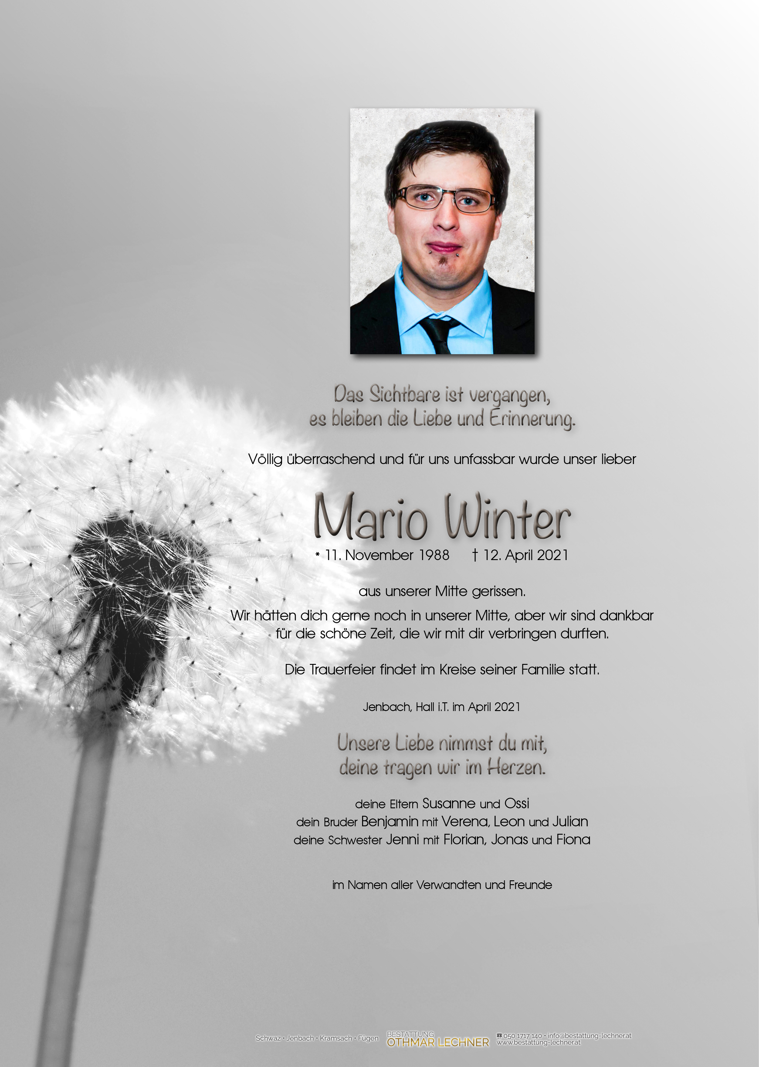 Neue Kerze für Mario Winter entzünden.