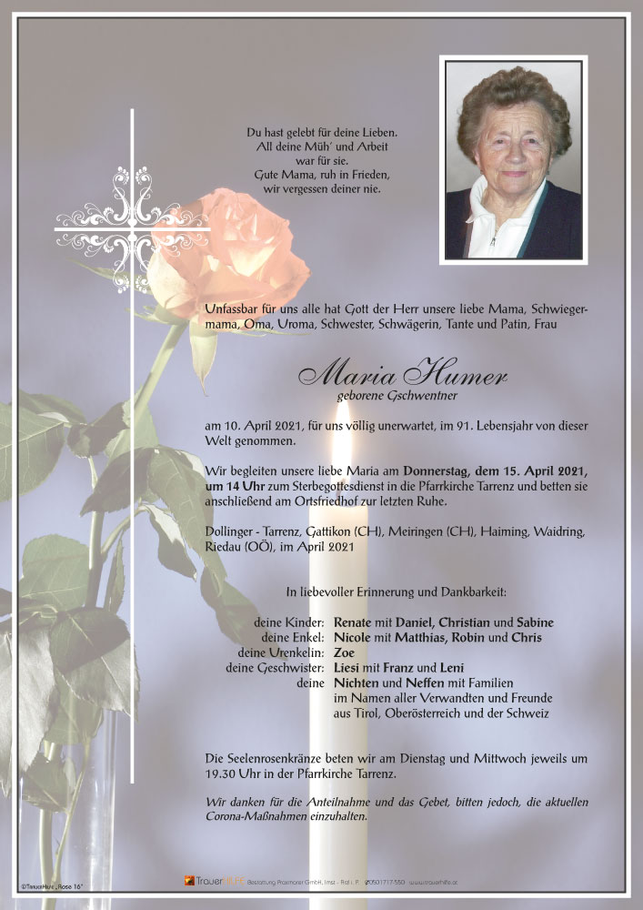 Friedhof Tarrenz, † 10.04.2021 (90 Jahre)