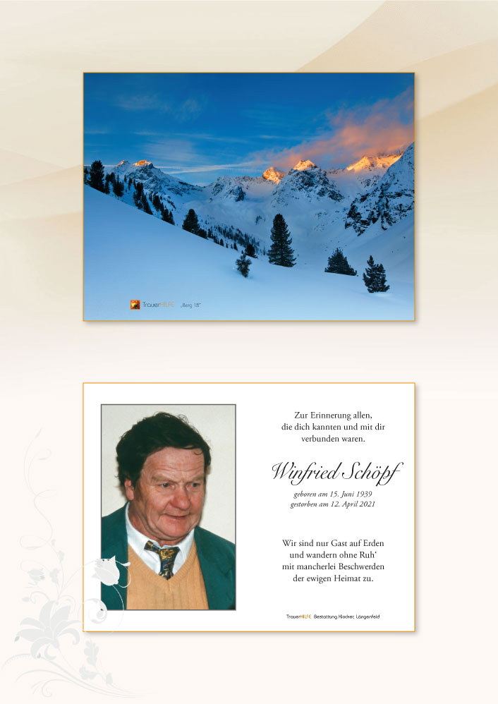Bestattung wurde durchgeführt von: Daniel Klocker Bestattung Klocker GmbH Oberlängenfeld 41 6444 - Längenfeld Tel.: 05253 5561 zum Bestatter