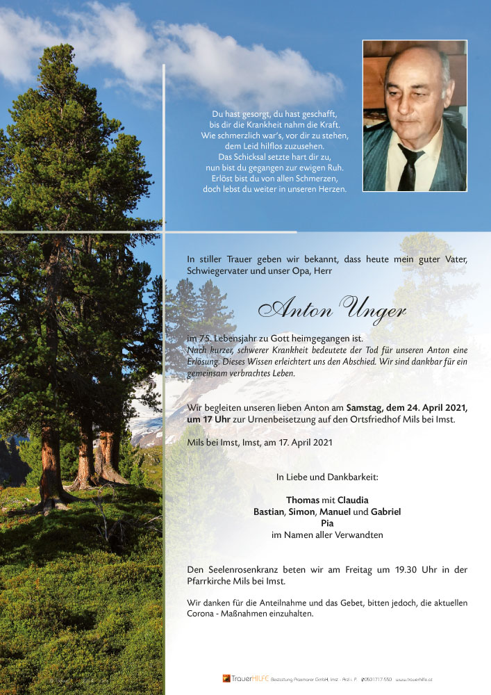 Friedhof Mils bei Imst, † 17.04.2021 (74 Jahre)