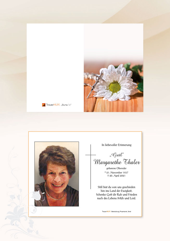 Bestattung wurde durchgeführt von: Daniel Klocker Bestattung Praxmarer GmbH Thomas Walch Str. 4 6460 - Imst Tel.: 05412 64250 zum Bestatter