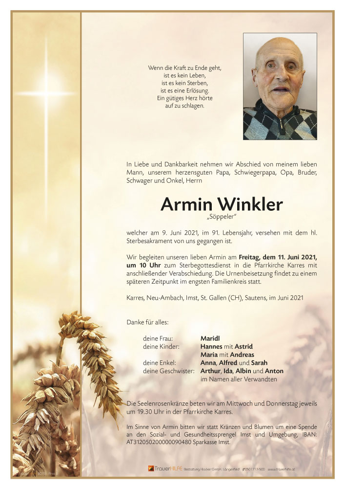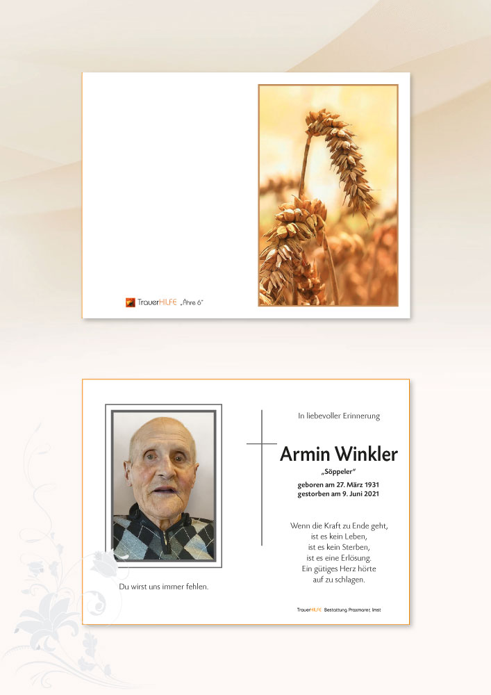 Unsere aufrichtige Anteilnahme am Heimgang von Armin.