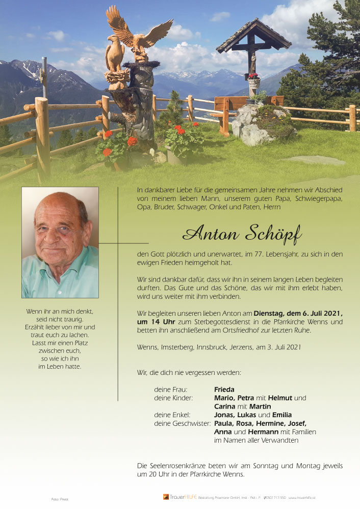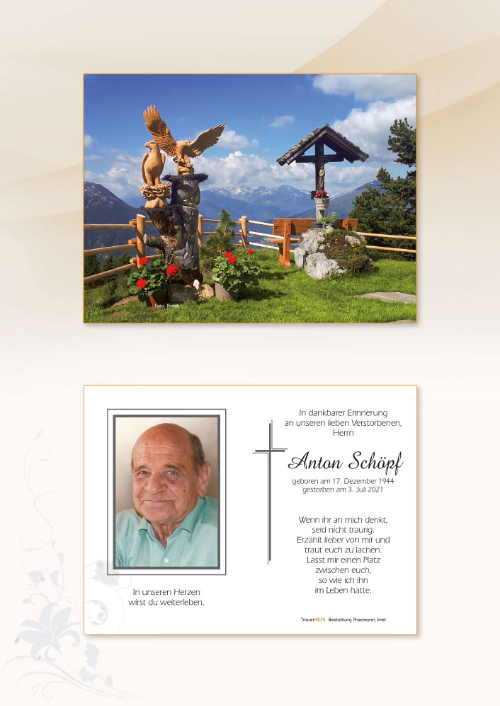 Wir möchten euch allen zum plötzlichen Ableben eures lieben Toni unser aufrichtiges Beileid aussprechen und viel Kraft für die schwere Zeit wünschen.05.07.2021 16:58 - Bair Barbara, Irene & Bernhard mit Fam.