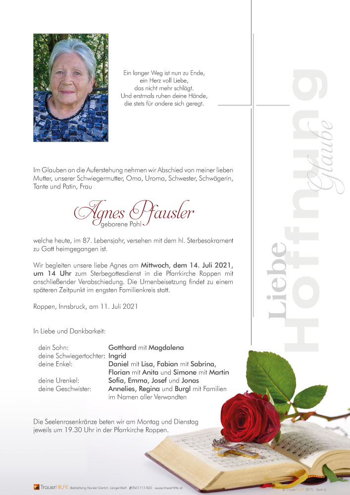 Friedhof Roppen, † 11.07.2021 (86 Jahre)