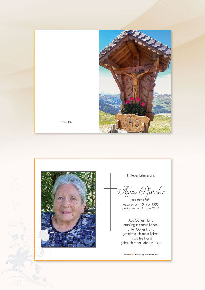Bestattung wurde durchgeführt von: Daniel Klocker Bestattung Praxmarer GmbH Thomas Walch Str. 4 6460 - Imst Tel.: 05412 64250 zum Bestatter
