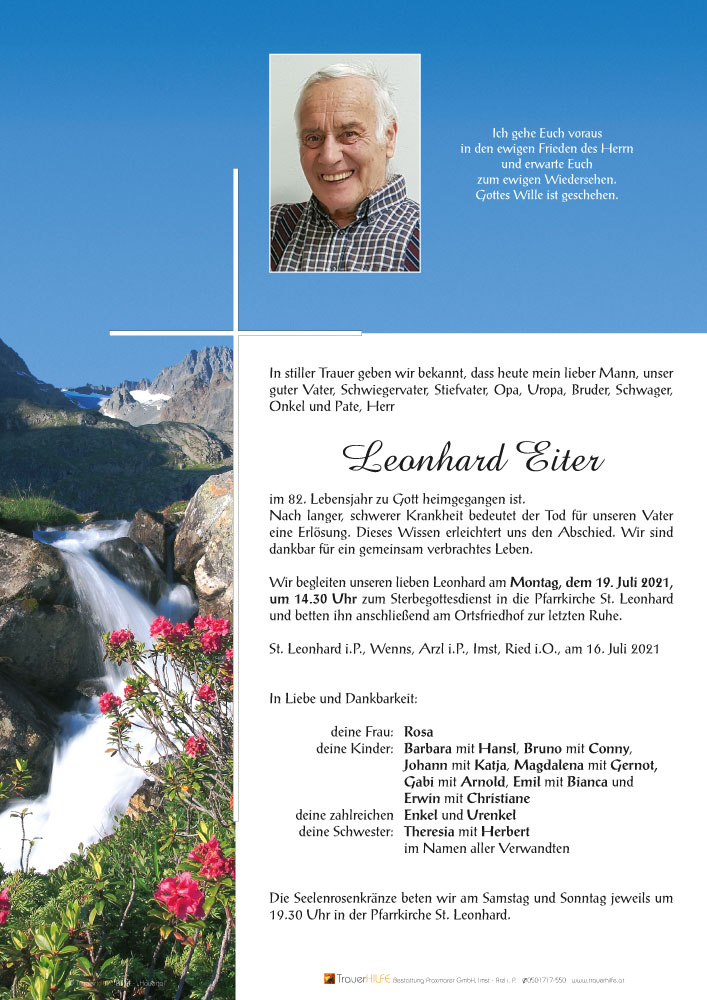 Wir möchten euch allen zum Ableben eures lieben Familienmenschen Leonhard unser aufrichtiges Beileid aussprechen und viel Kraft für die schwere Zeit wünschen.16.07.2021 19:22 - Bair Barbara, Irene & Bernhard mit Fam.