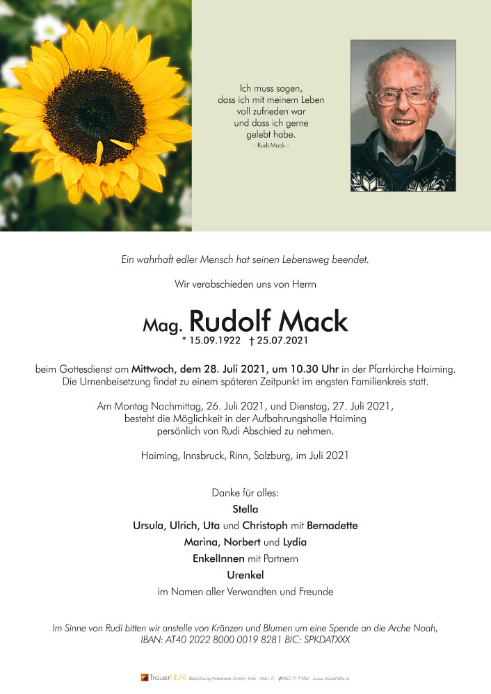 Friedhof Haiming, † 25.07.2021 (98 Jahre)