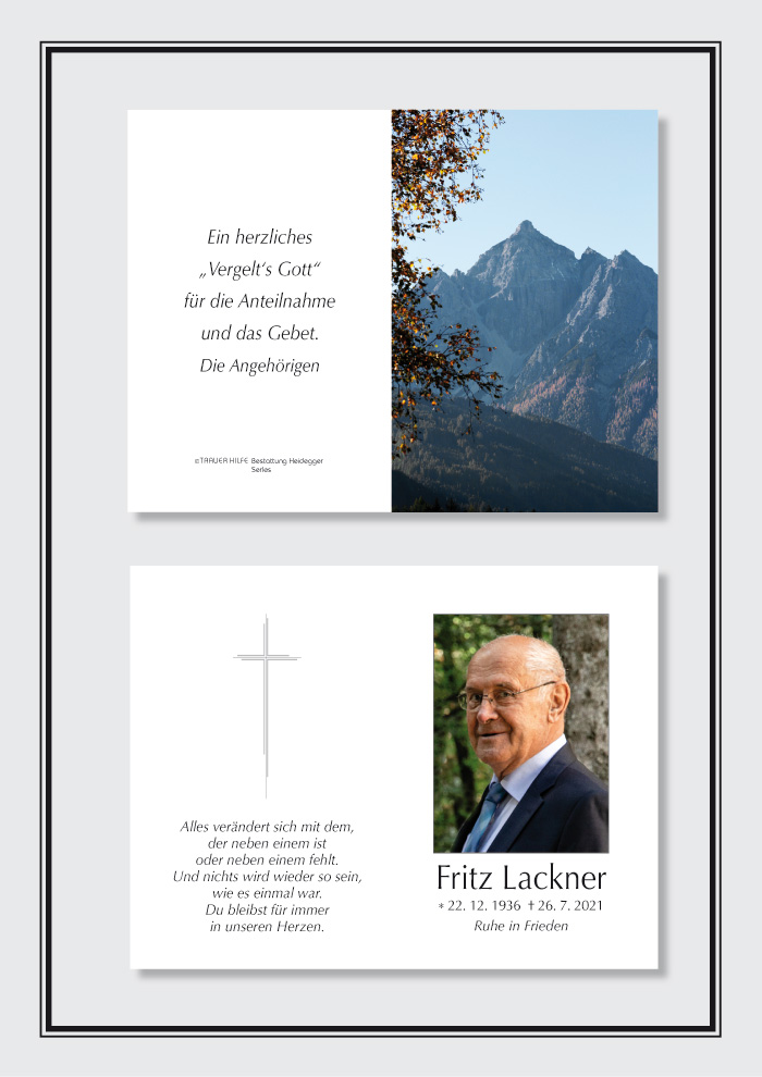 Bestattung wurde durchgeführt von: Karl Neurauter Karl Neurauter Bestattung Heidegger Brennerstraße 69 6150 - Steinach am Brenner Tel.: 05275 5211 zum Bestatter