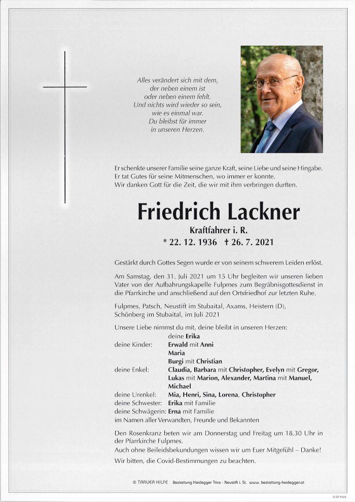Friedhof Fulpmes, † 26.07.2021 (84 Jahre)