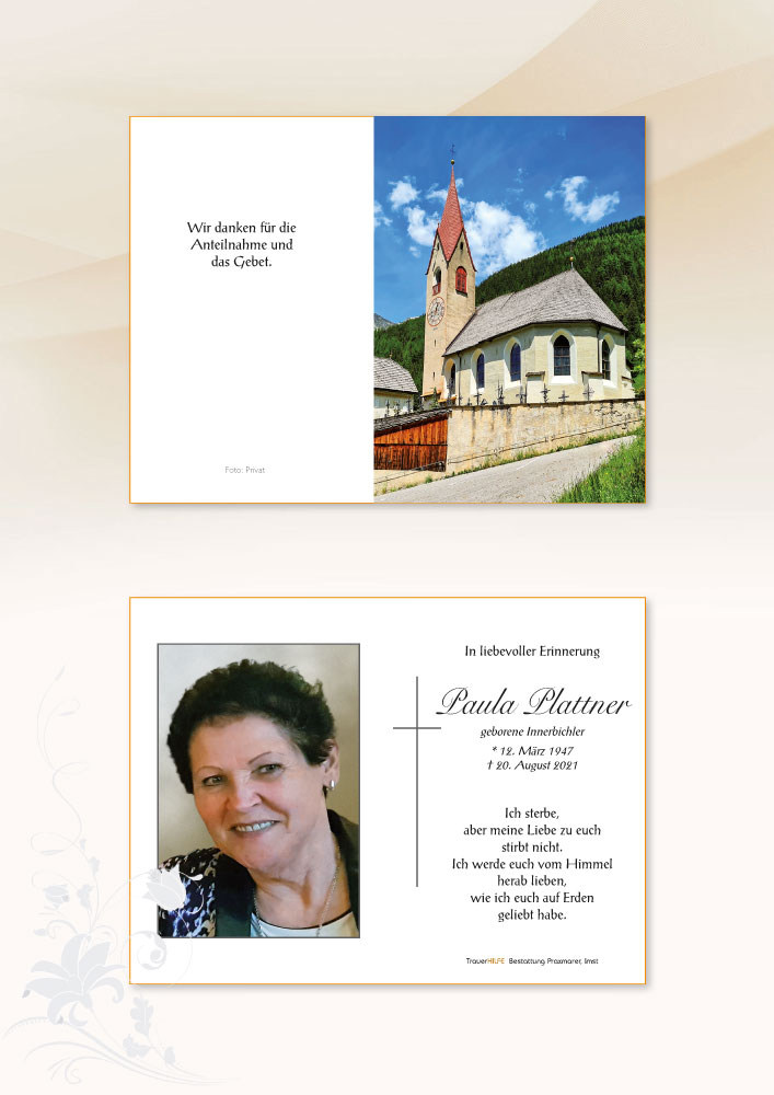 Zum plötzlichen Ableben eurer lieben Paula möchten wir euch unser aufrichtiges Beileid aussprechen. Sie war stets offen für ein nettes Gespräch und hat uns ihre handwerklichen Fähigkeiten nähergebracht. Ihre tollen Häkel- und Strickarbeiten haben uns wirklich begeistert. Pfieti Paula. Euch allen viel Kraft für die schwere Zeit.26.08.2021 10:16 - Bair Barbara, Irene & Bernhard mit Fam.