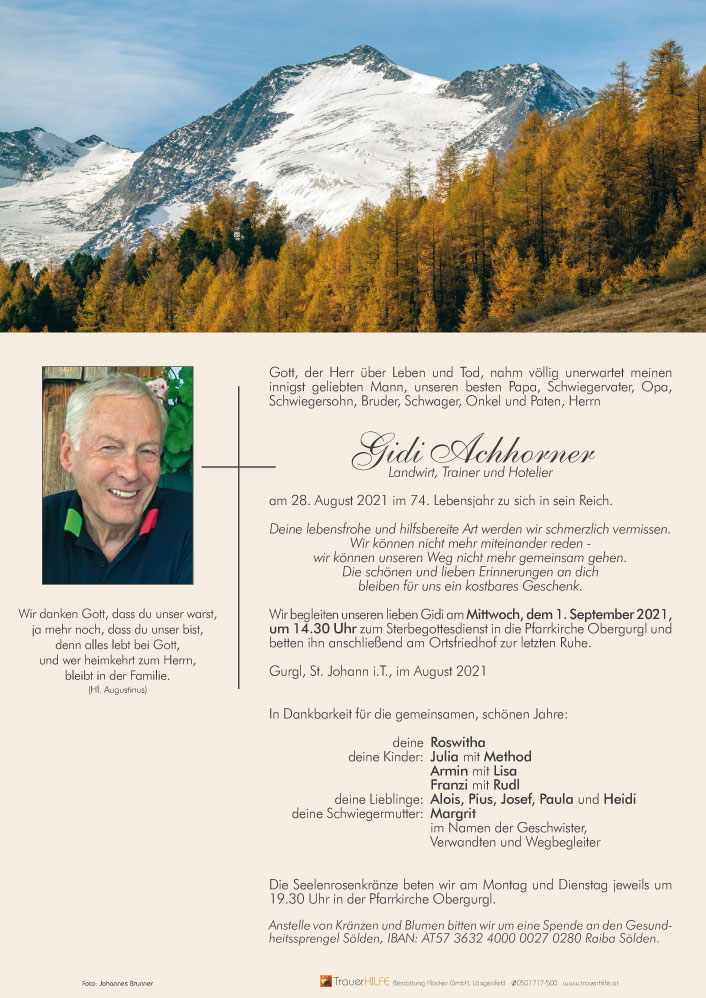 tief betroffen und traurig über die Todesnachricht von Gidi,