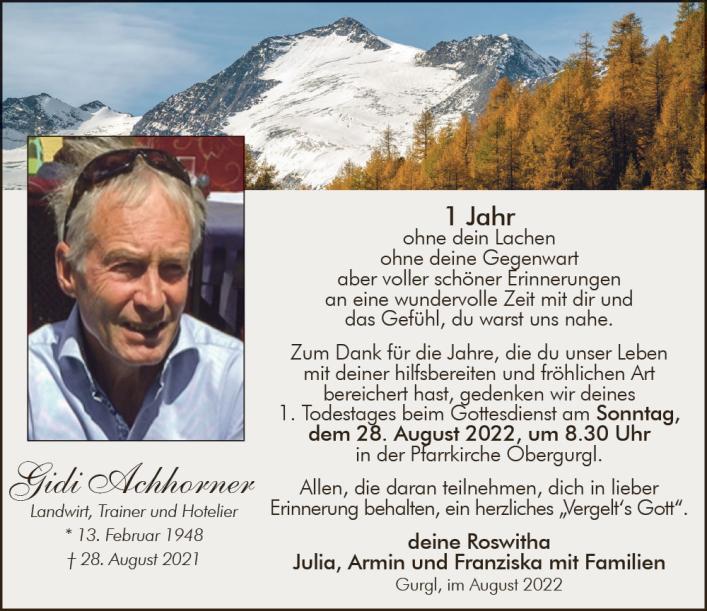 Neue Kerze für Gidi Achhorner entzünden.