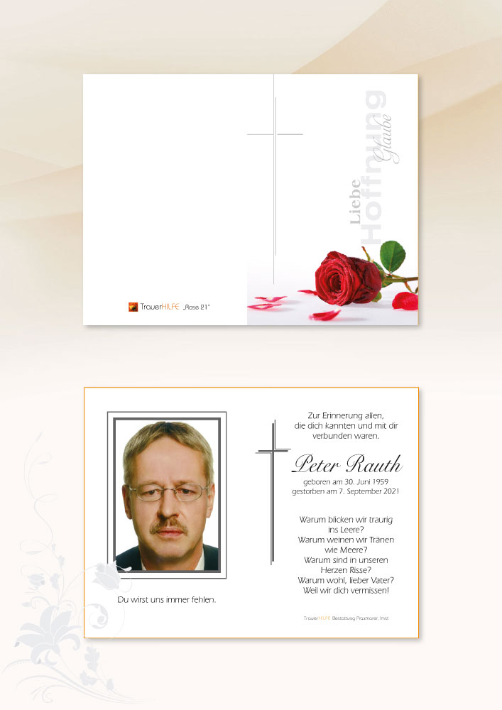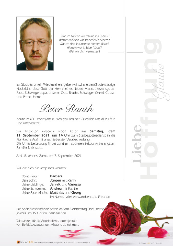 Tief betroffen vom plötzlichen Tod eures lieben Peters, meines langjährigen Arbeitskollegen, möchte ich mein herzlichstes Beileid ausdrücken!