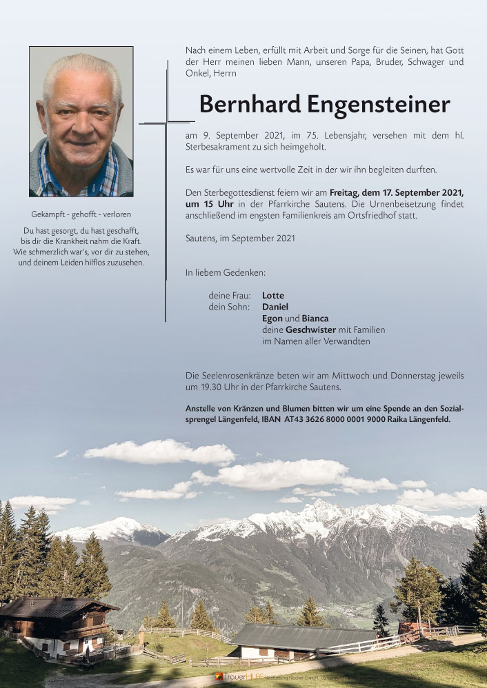 Neue Kerze für Bernhard Engensteiner entzünden.