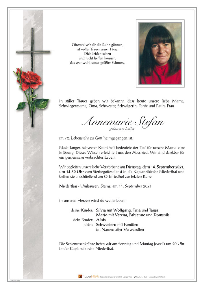 Friedhof Niederthai, † 11.09.2021 (71 Jahre)