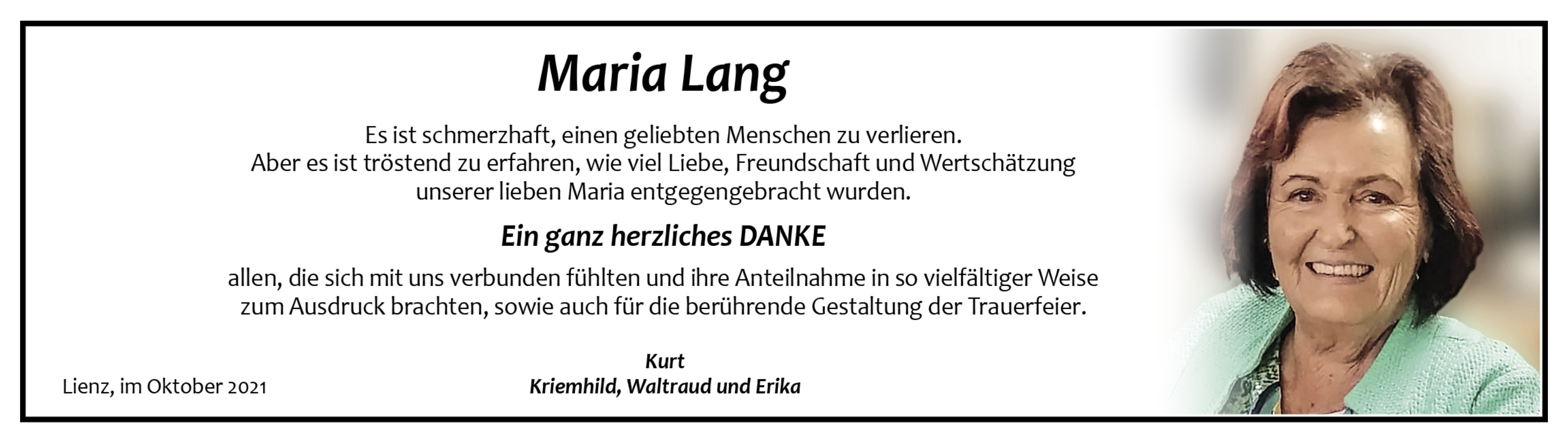 Lieber Kurt! Erst vor kurzer Zeit habe ich Maria noch getroffen, ich kann es nicht glauben, dass sie nun nicht mehr am Leben ist.