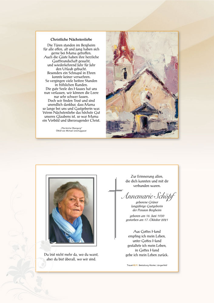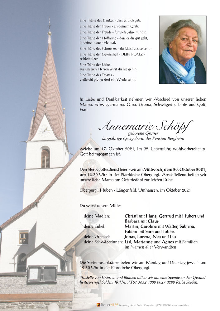 mit dem Heimgang von Annemarie zu ihrem Schöpfer verliert Ihr einen wesentlichen Teil Eurer Familie. Sie war eine starke Frau, die ihr Schicksal annahm und ihr Leben meisterte.