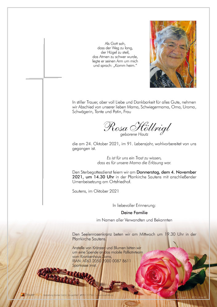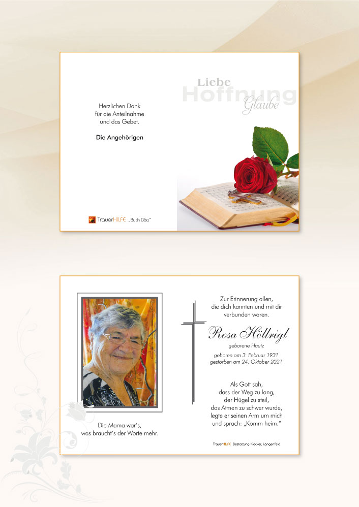 Du darfst darauf hoffen, dass Mama in eine schöne Begegnung mit Gott gekommen ist. Die viele Zeit, die Du mit Mama verbracht hast, sollen Dir Trost in der dunklen Zeit der Trauer sein. Bald wir auch für Dich die Sonne wieder scheinen.