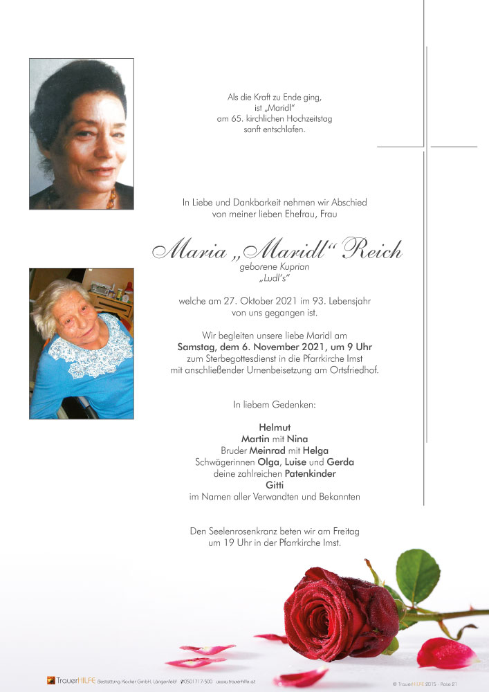 Zum Heimgang eurer lieben Maridl möchten wir unser herzliches Beileid aussprechen.