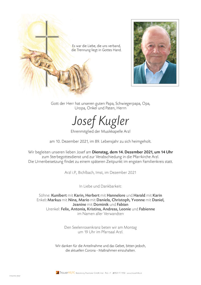 Lieber Josef, für deine Treue zur Blasmusik, dein Wirken und Schaffen als Ausschussmitglied und Obmann, deine Kameradschaft und Freundschaft, werden wir dich stets in bester Erinnerung bewahren.