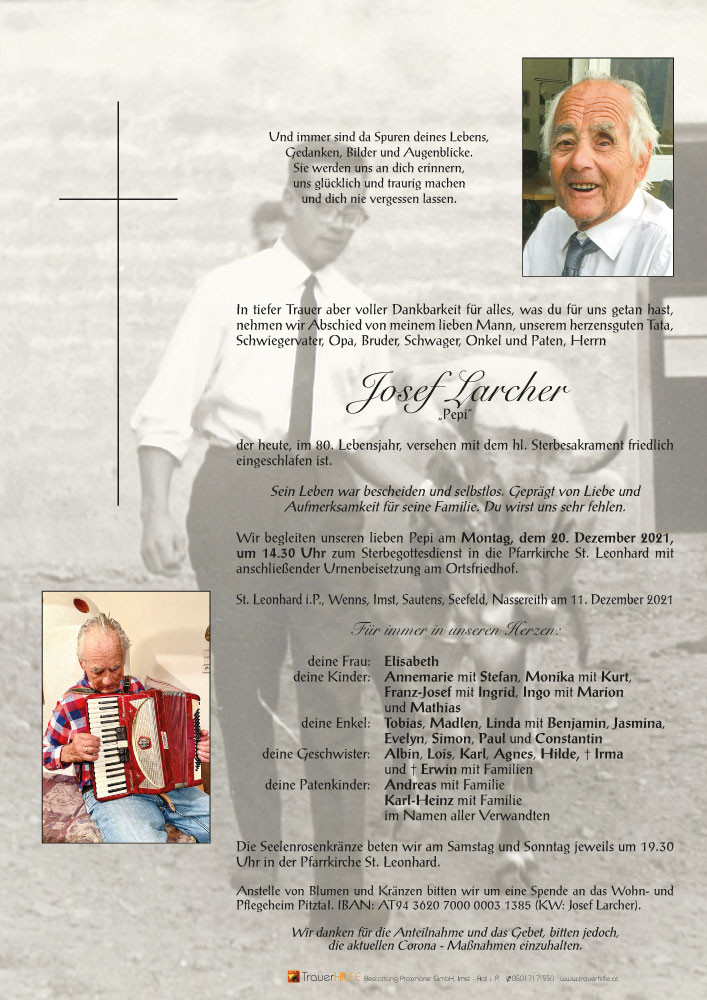 Wir möchten euch allen unser aufrichtiges Beileid aussprechen und viel Kraft und Zuversicht für die schwere Zeit wünschen. Wir werden Pepi stets in lieber Erinnerung behalten und an die vielen schönen Stunden zurückdenken.13.12.2021 17:41 - Melmer Midl & Bair Barbara, Irene & Bernhard