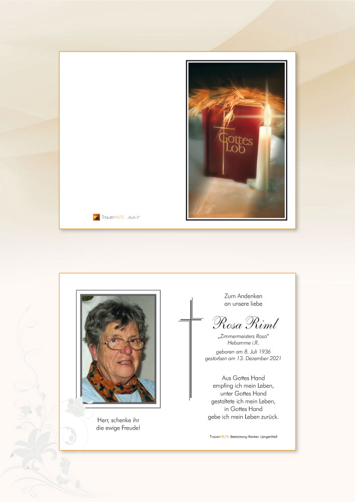 Bestattung wurde durchgeführt von: Daniel Klocker Bestattung Klocker GmbH Oberlängenfeld 41 6444 - Längenfeld Tel.: 05253 5561 zum Bestatter