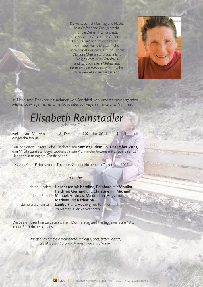 Neue Kerze für Elisabeth Reinstadler entzünden.