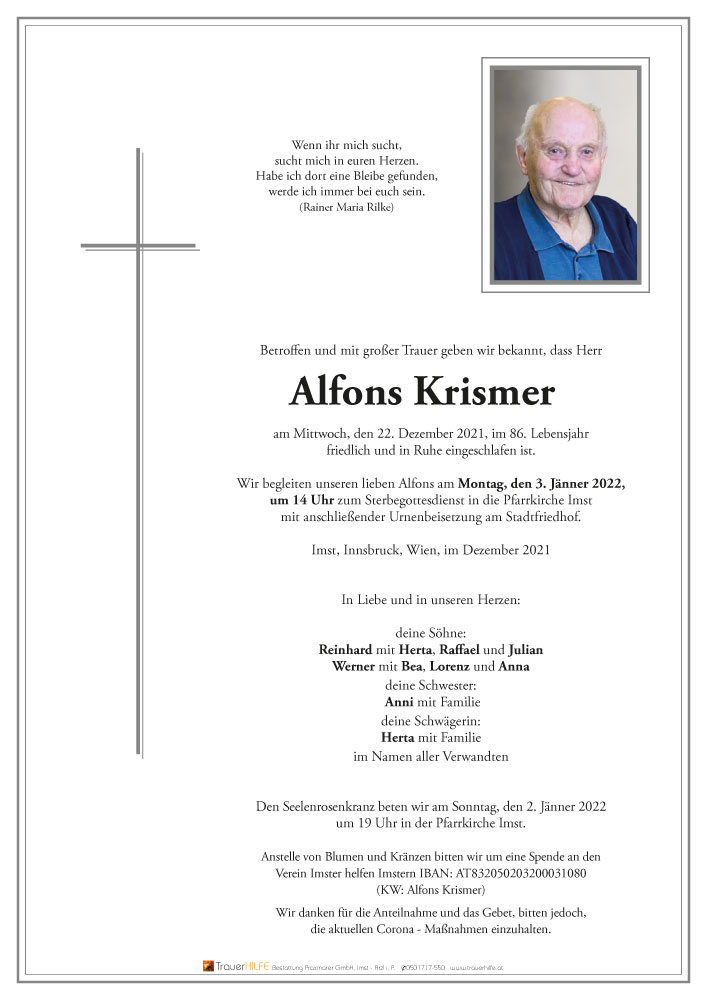 Mein aufrichtiges Beileid zum Heimgang eures Vaters Alfons