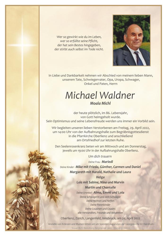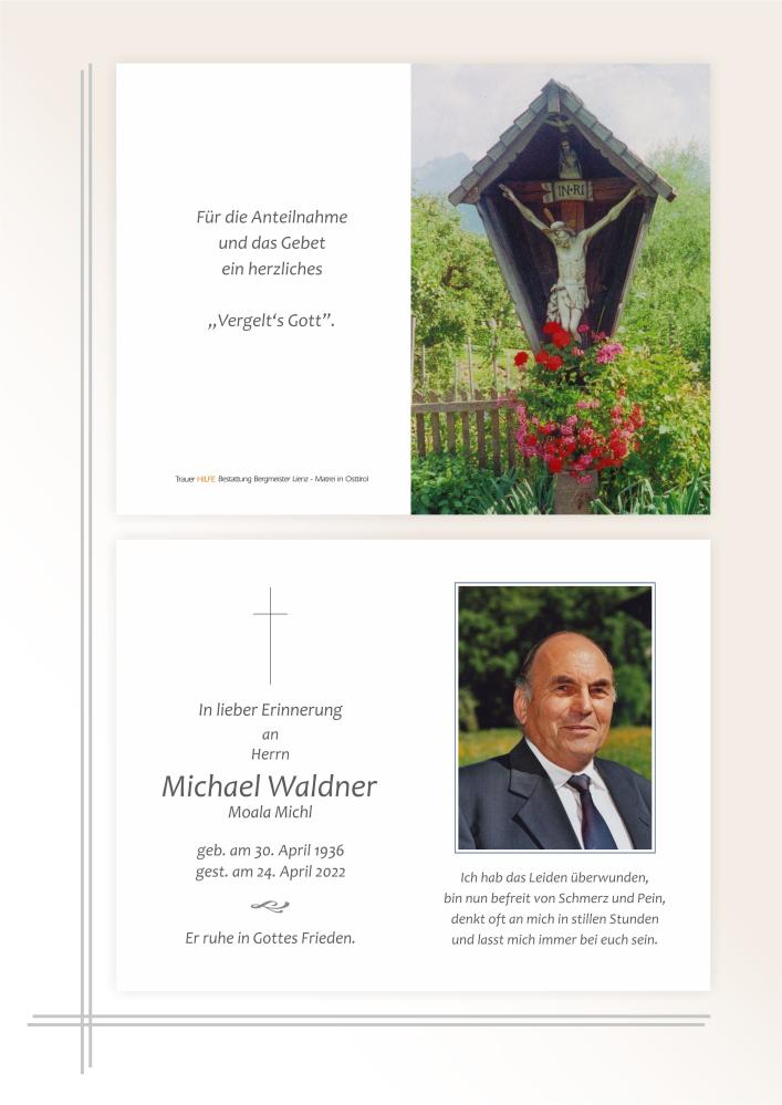Michl war für den gesamten Osttiroler Forstdienst unverzichtbar und eine tragende Stütze. Als langjähriger Obmann hat er mit viel Sach- und Fachkenntnis aber auch mit Herz und Hausverstand die Geschicke des Waldpflegevereines Lienz geleitet. Unvergessen sind die Projektkontrollen durch Forstleute aus Wien. Ihnen konnte Michl die Besonderheiten der "Osttiroler Waldwirtschaft" in den buntesten Farben schildern. Aber auch, wenn es notwendig war, standhaft für die osttiroler Förderprojekte eintreten.