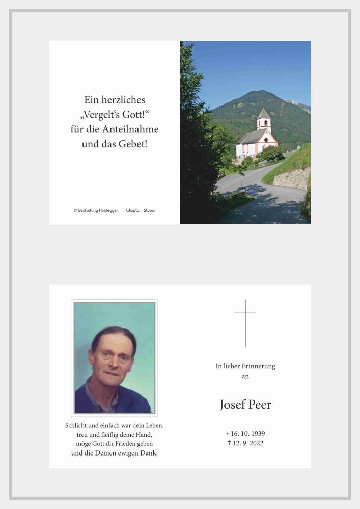 Bestattung wurde durchgeführt von: Karl Neurauter Karl Neurauter Bestattung Heidegger Brennerstraße 69 6150 - Steinach am Brenner Tel.: 05275 5211 zum Bestatter