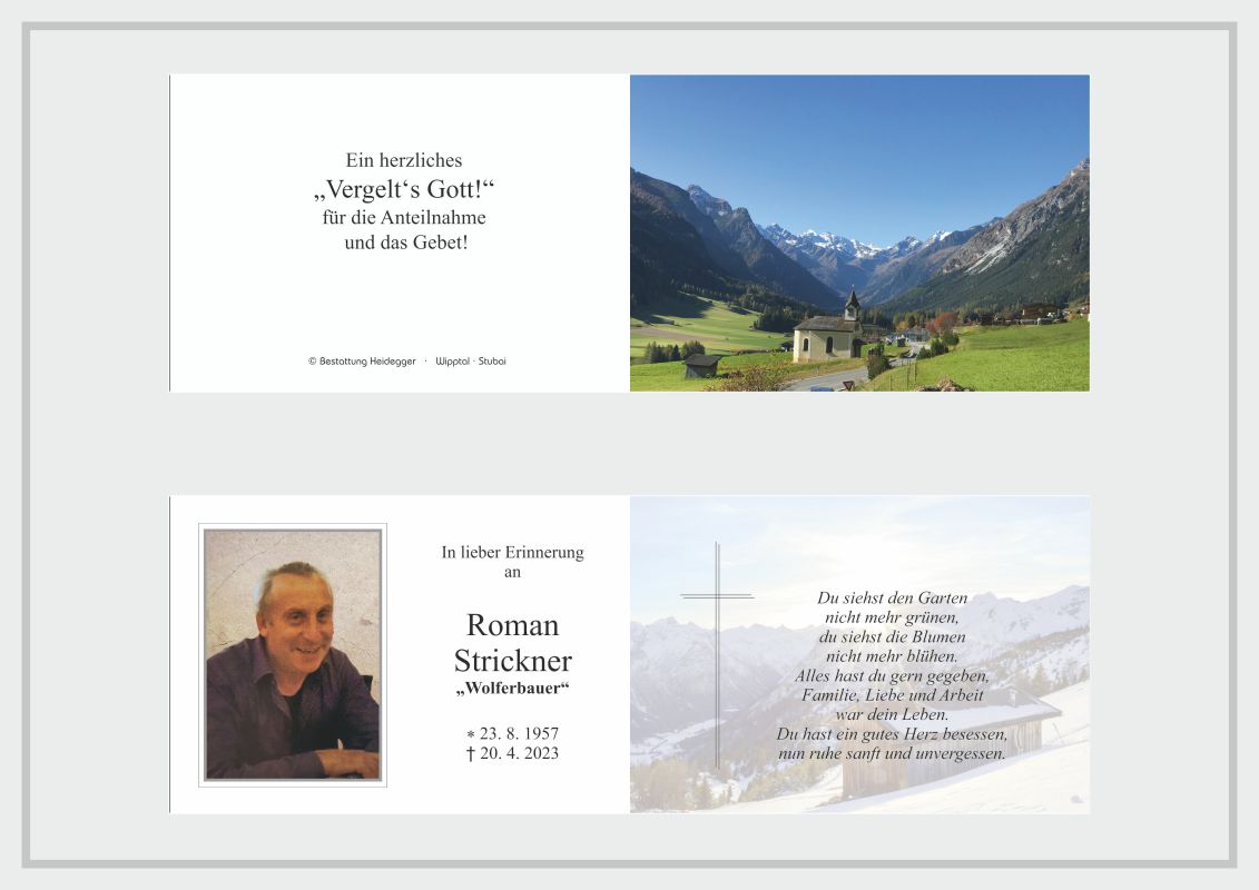 Bestattung wurde durchgeführt von: Karl Neurauter Karl Neurauter Bestattung Heidegger Brennerstraße 69 6150 - Steinach am Brenner Tel.: 05275 5211 zum Bestatter