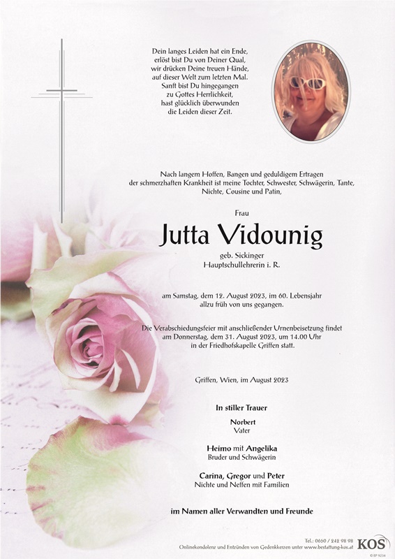 Bestattung wurde durchgeführt von: Familienbetrieb Bestattung Kos Bestattung A. & J. Kos GmbH Krankenhausstraße 2A 9400 - Wolfsberg Tel.: 0650 242 98 98 zum Bestatter