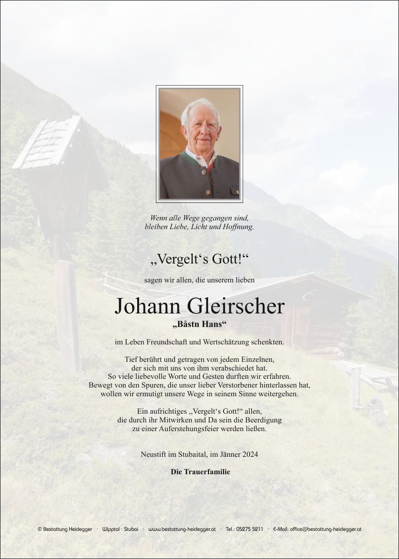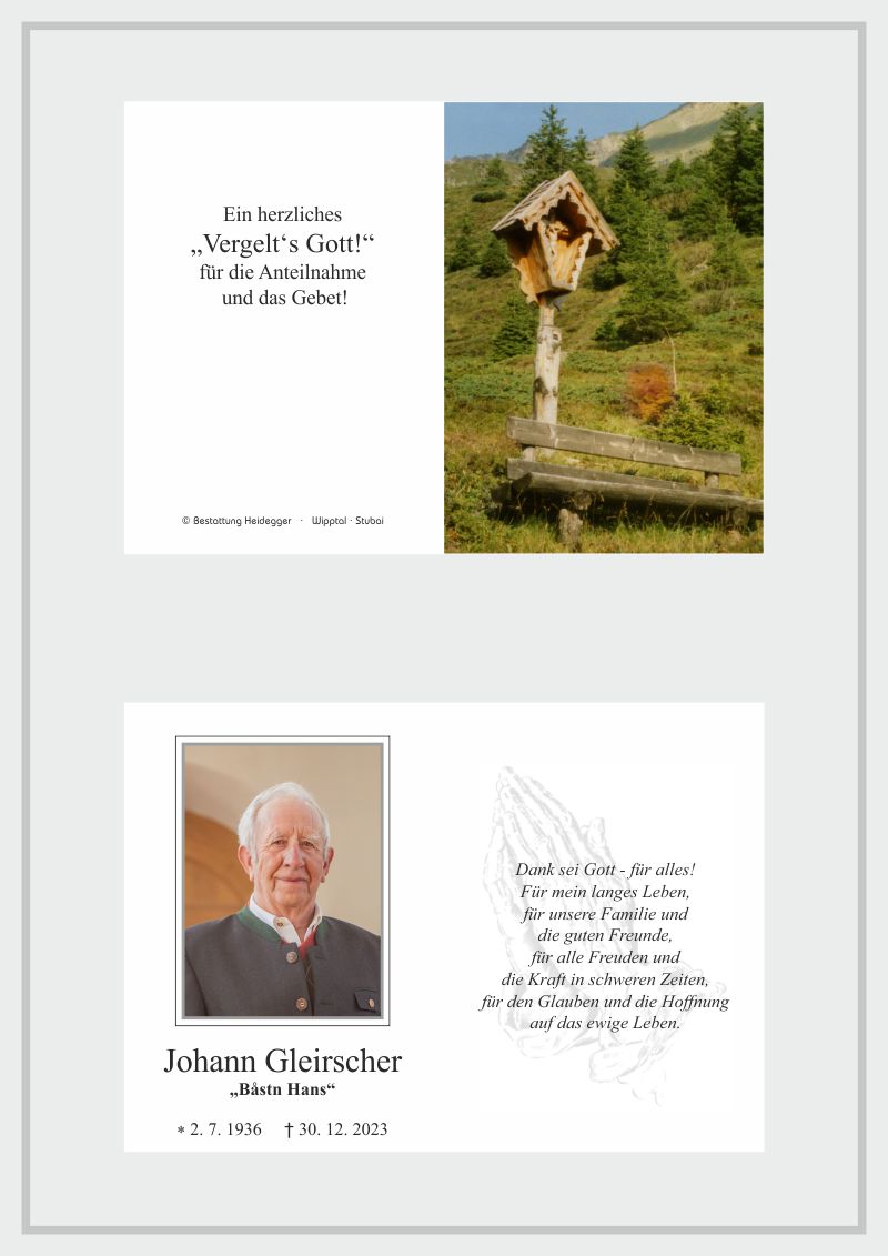 Neue Kerze für Johann Gleirscher entzünden.