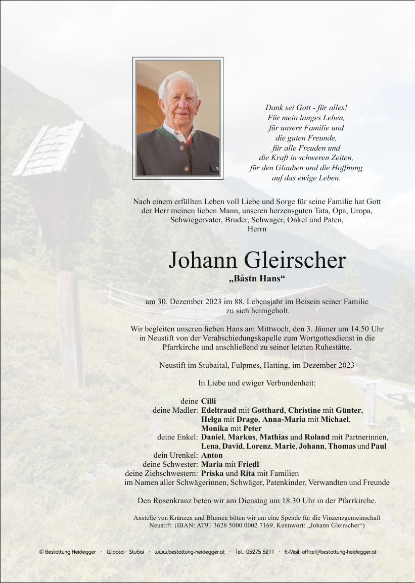 Friedhof Neustift im Stubaital, † 30.12.2023 (87 Jahre)