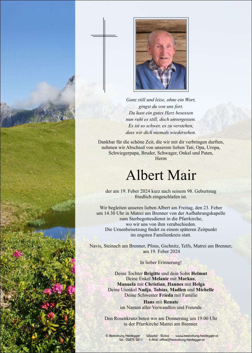Friedhof Matrei am Brenner, † 19.02.2024 (98 Jahre)