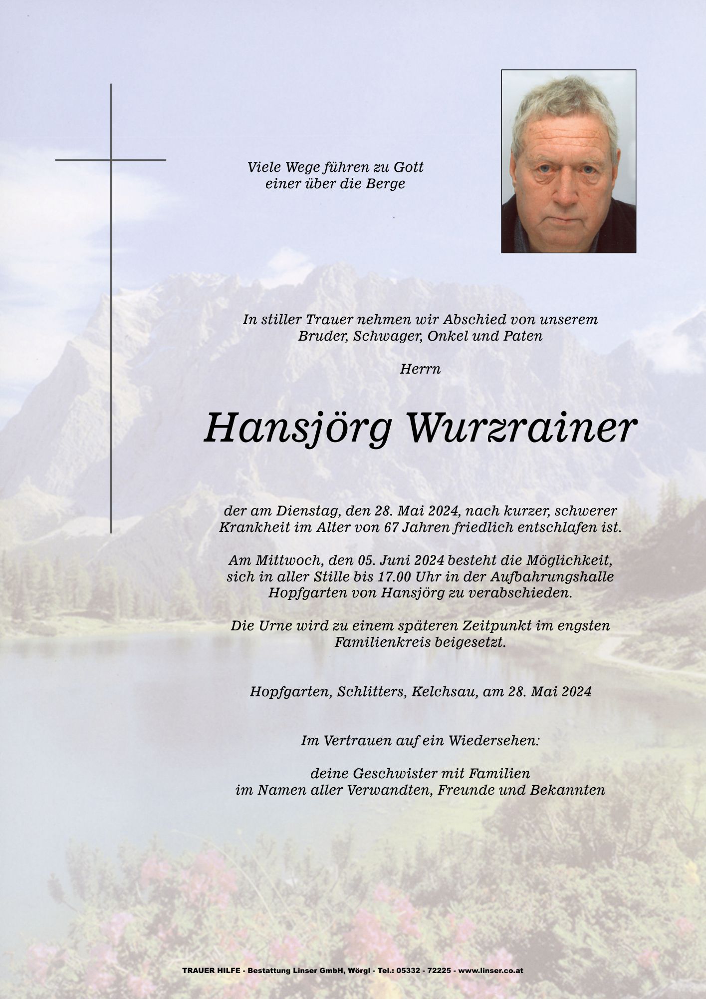 Neue Kerze für Hansjörg Wurzrainer entzünden.