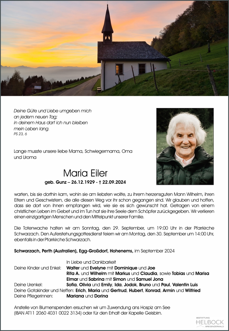 Bestattung wurde durchgeführt von: Markus Helbock Bestattung Helbock Bruggan 214 6863 - Egg Tel.: 05512 2102 zum Bestatter