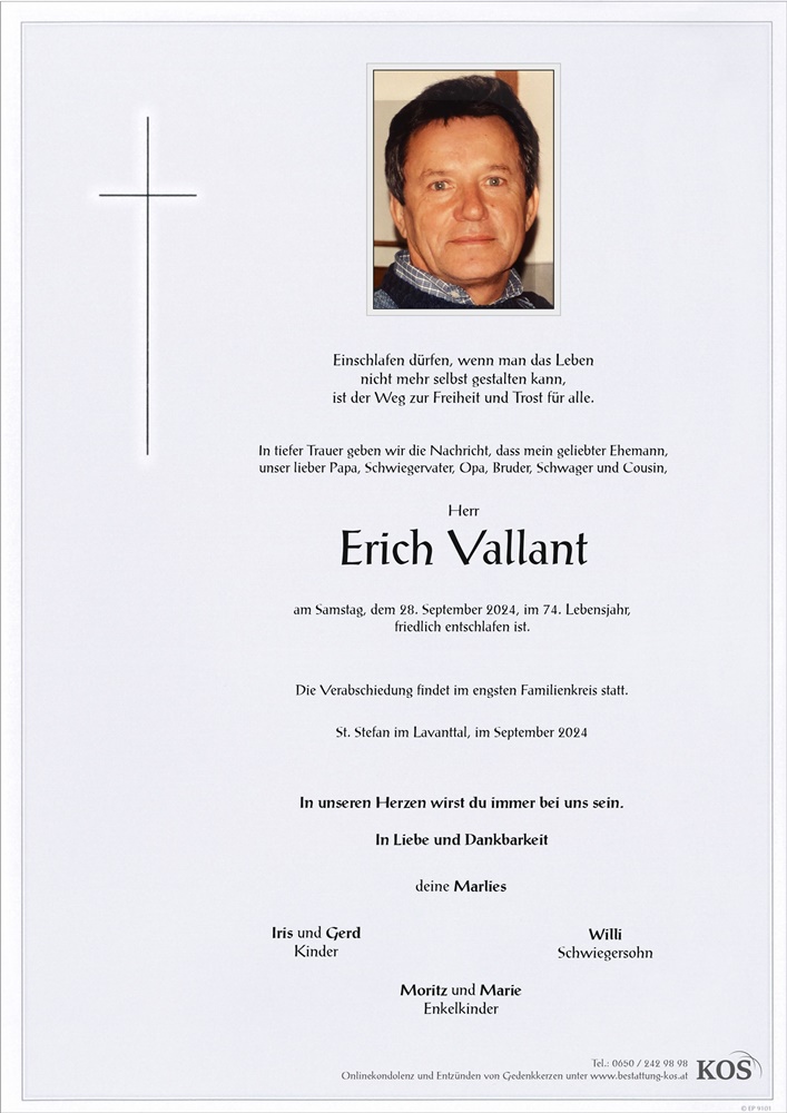 • Ruhe in Frieden Lieber Erich dein emaliger Vorgänger Lehrling bei der Fa. Kores, zum Telefonat hat es nicht mehrgereicht,