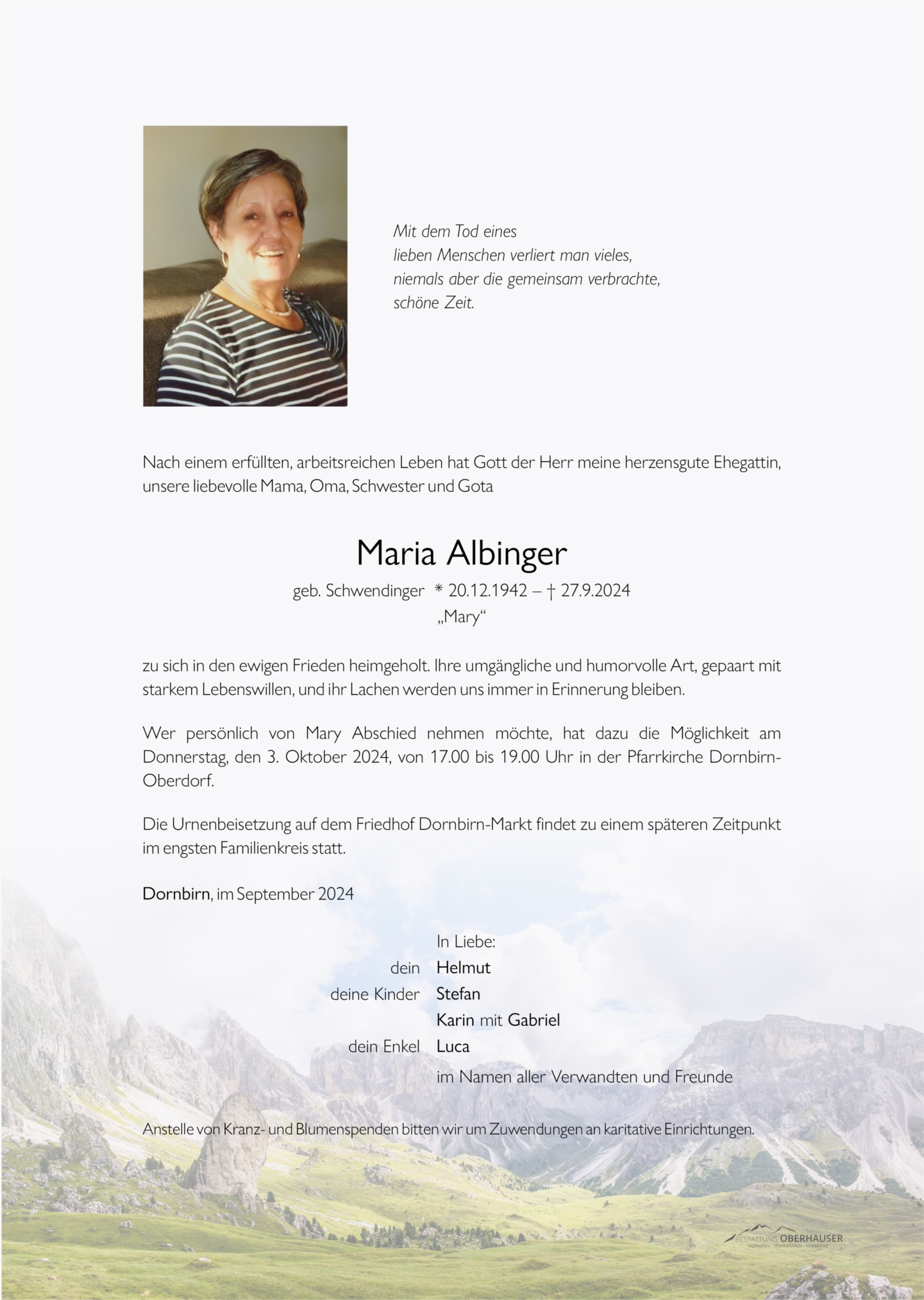 Friedhof Dornbirn Friedhof Markt, † 27.09.2024 (81 Jahre)