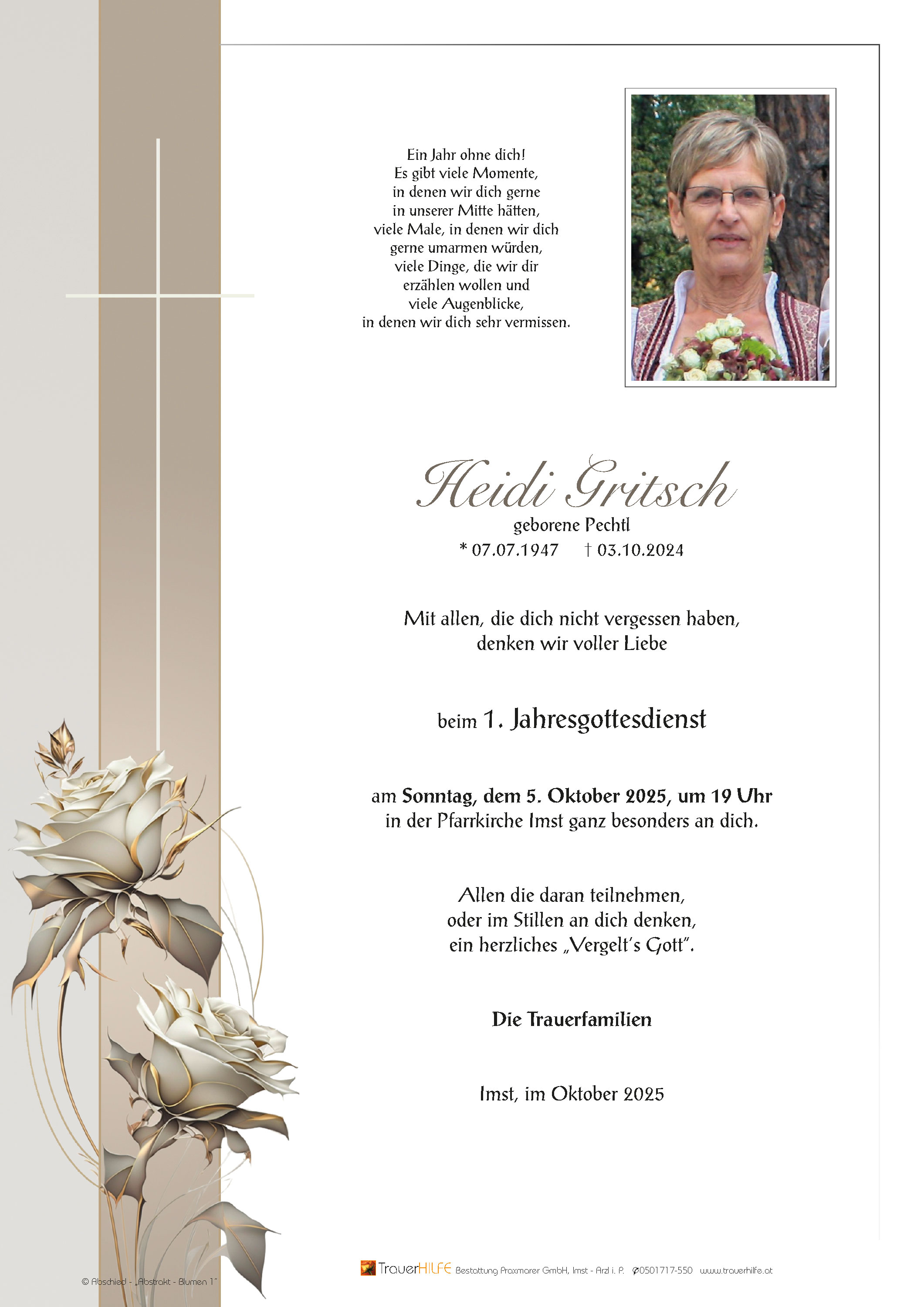 Unser aufrichtiges Beileid allen Angehörigen und Freunden. RIP04.10.2024 22:57 - Fam. Gomig Johanna und Josef