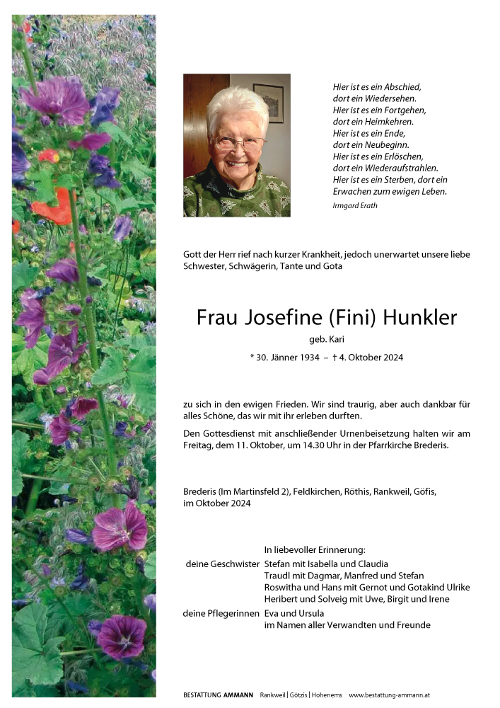 Bestattung wurde durchgeführt von: Bestattung Ammann Rankweil Ammann Bestattung GmbH Rankweil Splügenweg 1 6830 - Rankweil Tel.: 05522 42104 zum Bestatter