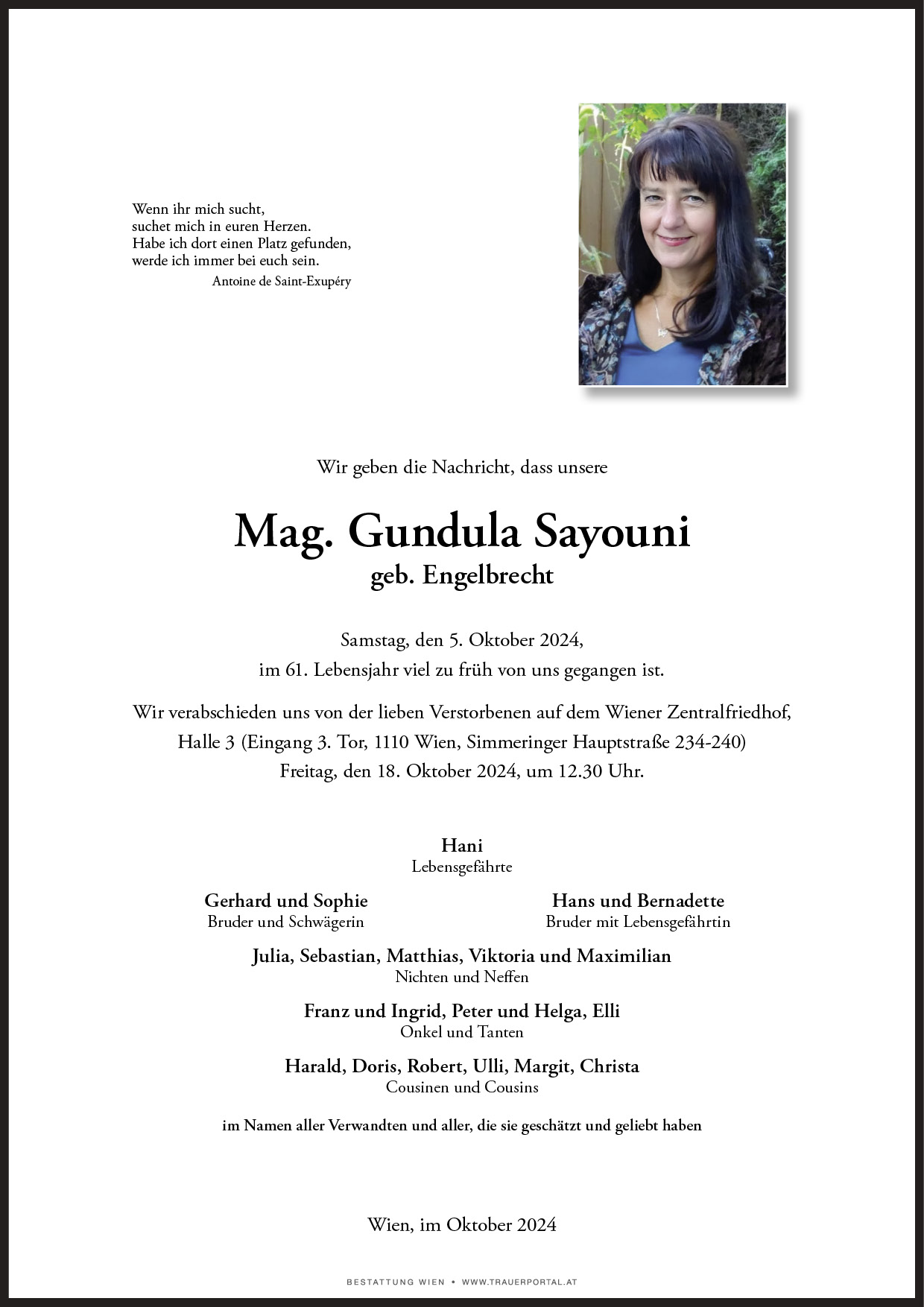 Bestattung wurde durchgeführt von: Bestattung Wien Bestattung Wien GmbH Simmeringer Hauptstraße 339 1110 - Wien (Simmering) Tel.: 01 501950 zum Bestatter
