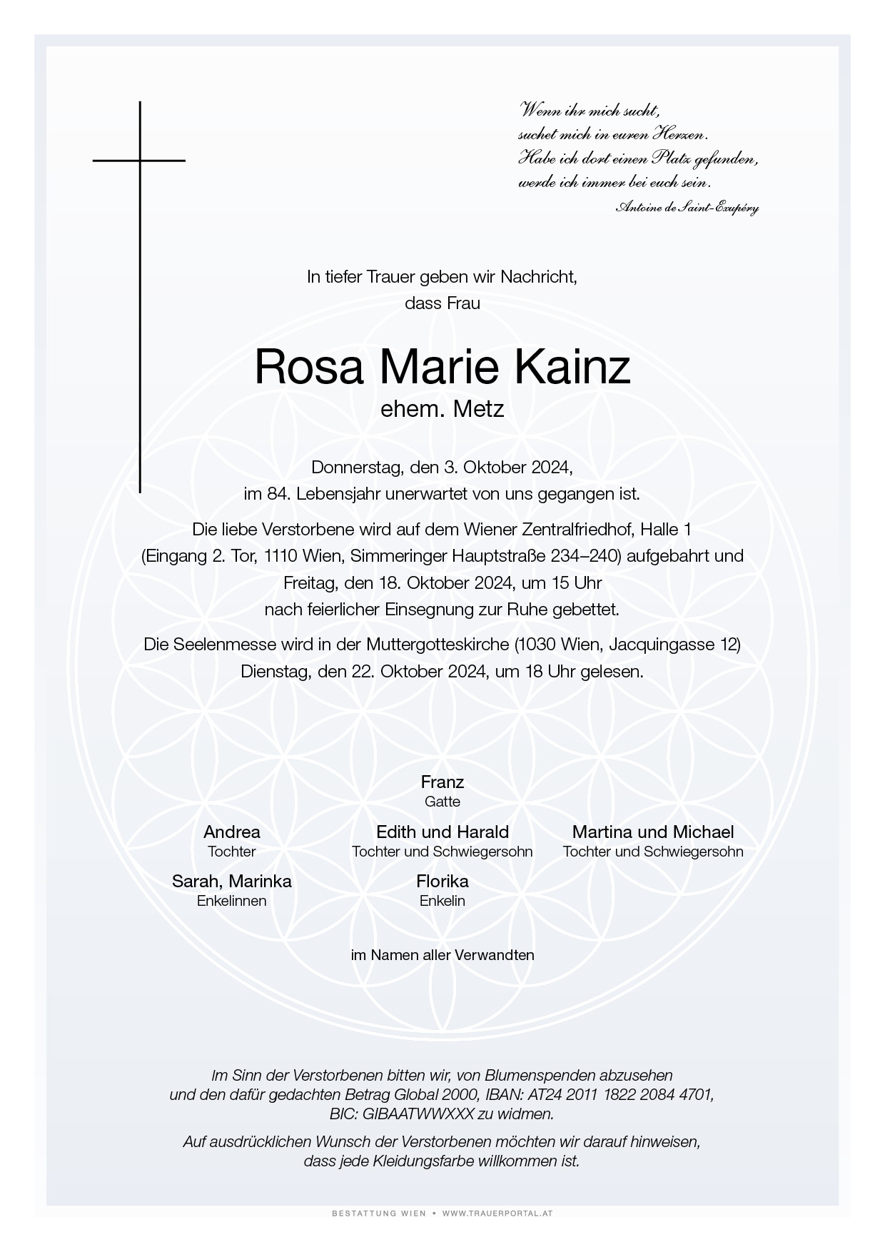 Neue Kerze für Rosa Marie Kainz entzünden.