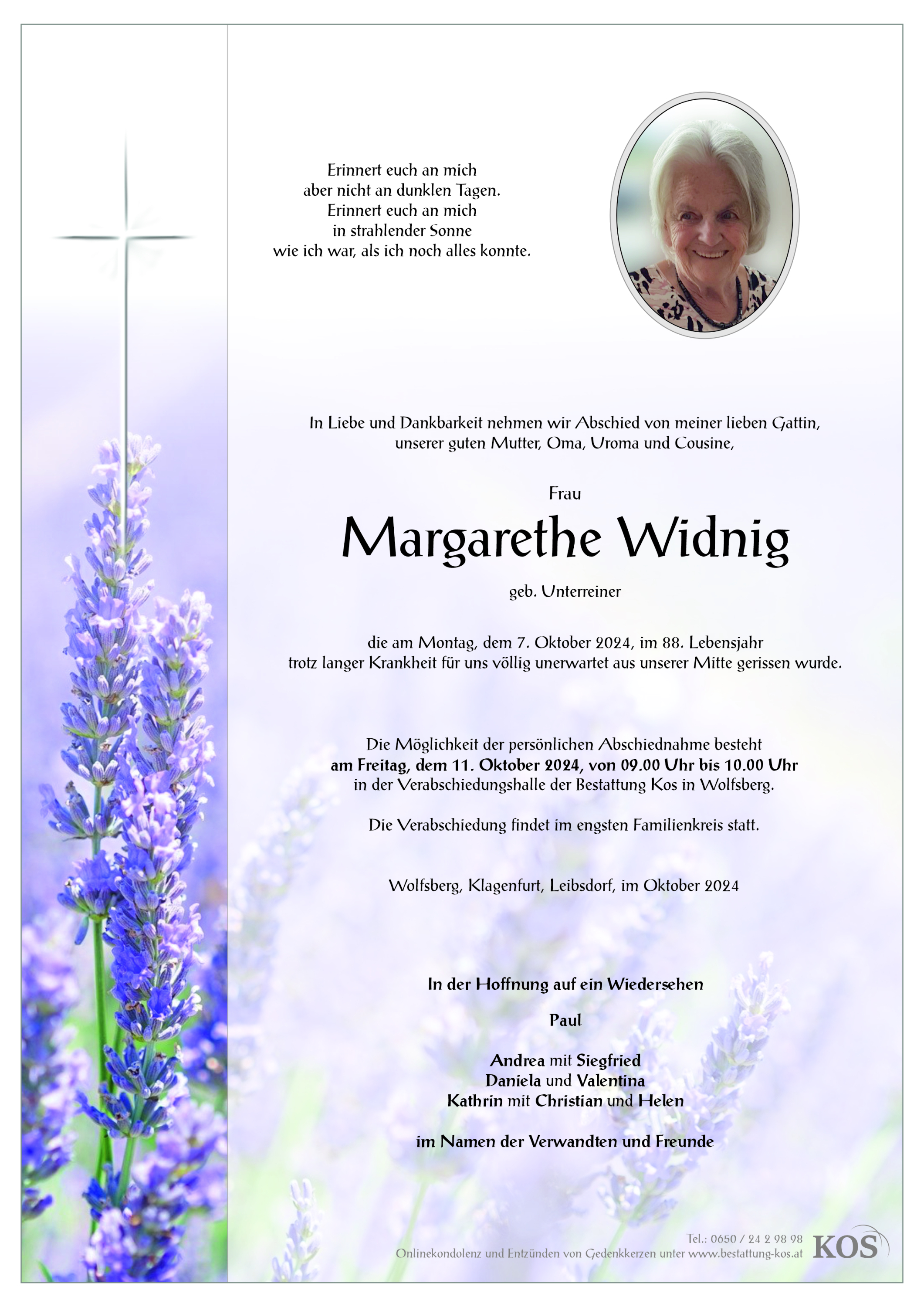 Ruhe in Frieden, liebe Frau Widnig! Herzliches Beileid den Angehörigen - Fam. Leopold / Rupacher