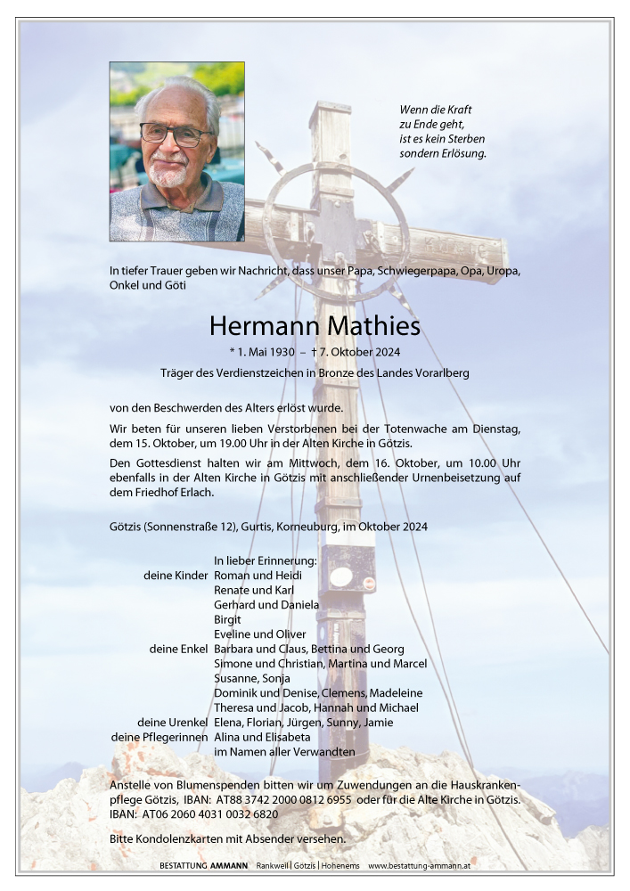 Friedhof Götzis, Friedhof Erlach, † 07.10.2024 (94 Jahre)