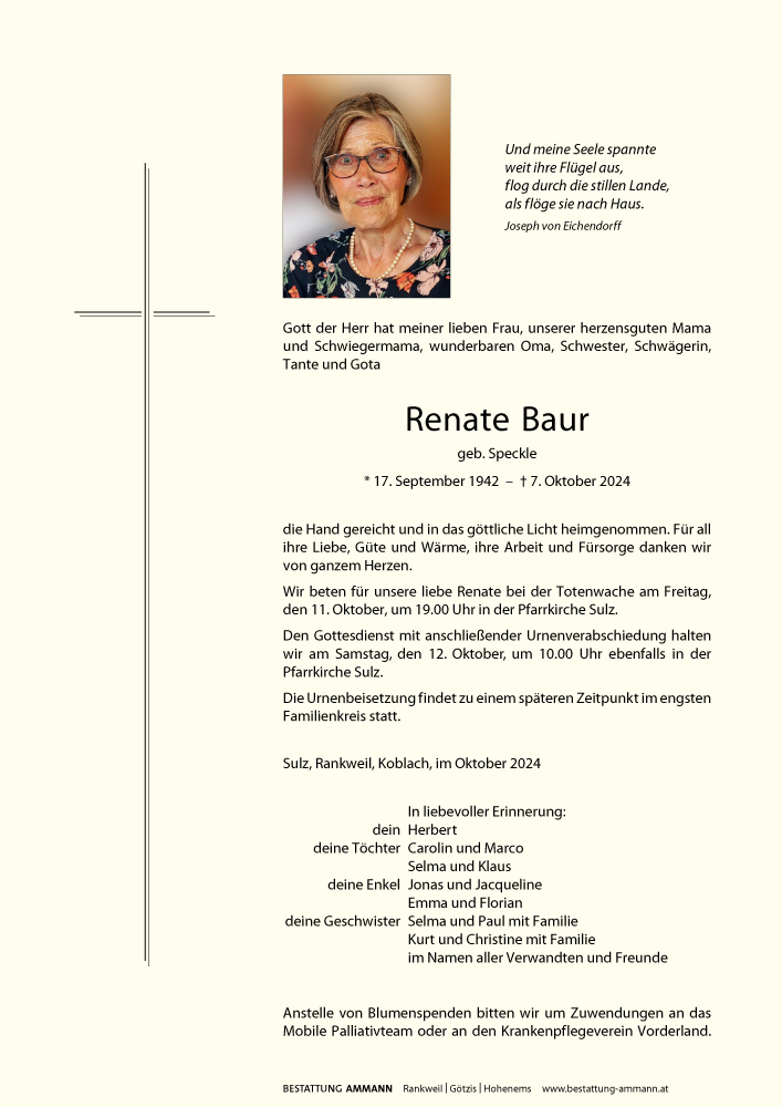 Bestattung wurde durchgeführt von: Bestattung Ammann Rankweil Ammann Bestattung GmbH Rankweil Splügenweg 1 6830 - Rankweil Tel.: 05522 42104 zum Bestatter
