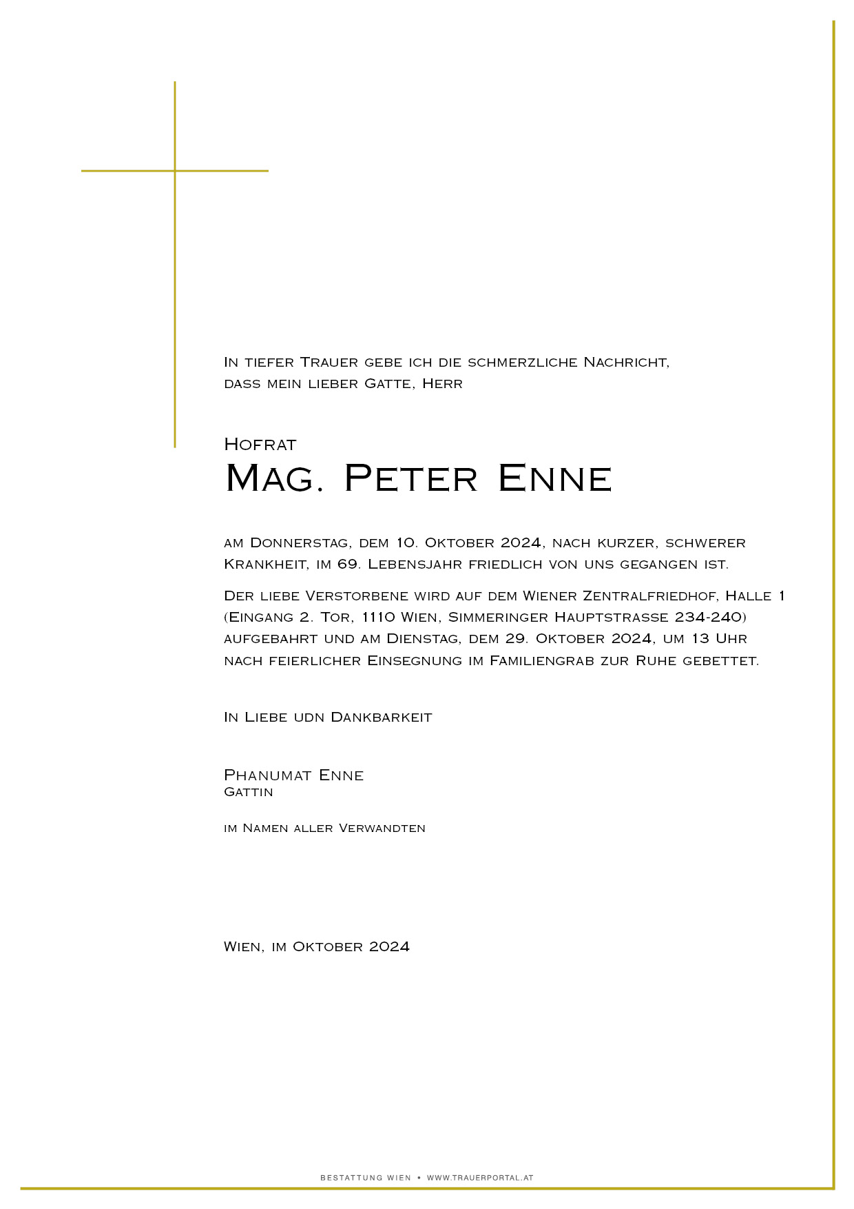 Bestattung wurde durchgeführt von: Bestattung Wien Bestattung Wien GmbH Simmeringer Hauptstraße 339 1110 - Wien (Simmering) Tel.: 01 501950 zum Bestatter